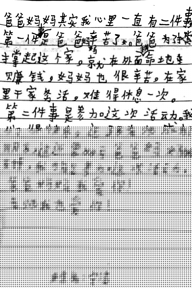 7月14日,9001jcc金沙以诚为本“阳光行动”农村留守儿童教育关爱服务团组织高桥小学留守儿童开展了一次书信活动,要求他们写下想对父母说的话。稚嫩的文字浅表对父母的爱意与想念,感染了全体成员。