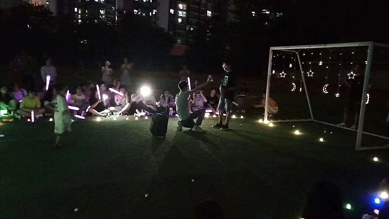 9月10日晚,在李子园校区田径场上,各色挥舞着的荧光棒吸引了大家的眼球。外国语学院18级英语师范专业三个班的学生们齐聚一堂,举办了小型的晚会,庆祝这个属于他们的节日。